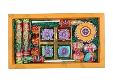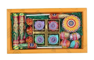 Combine all these touches — fairy lights on the walls, a bright rangoli near your entrance, diyas on window sills, and edible cracker chocolates as a fun surprise — and your home will glow with festive happiness.